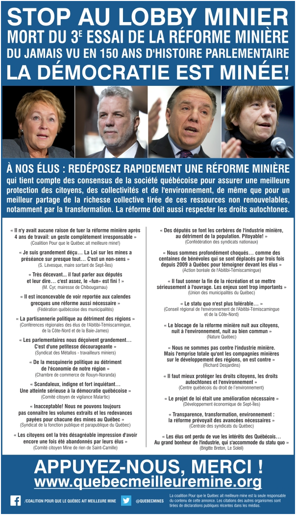 Voir ce message en ligne également: www.quebecmeilleuremine.org/content/stop-au-lobby-minier